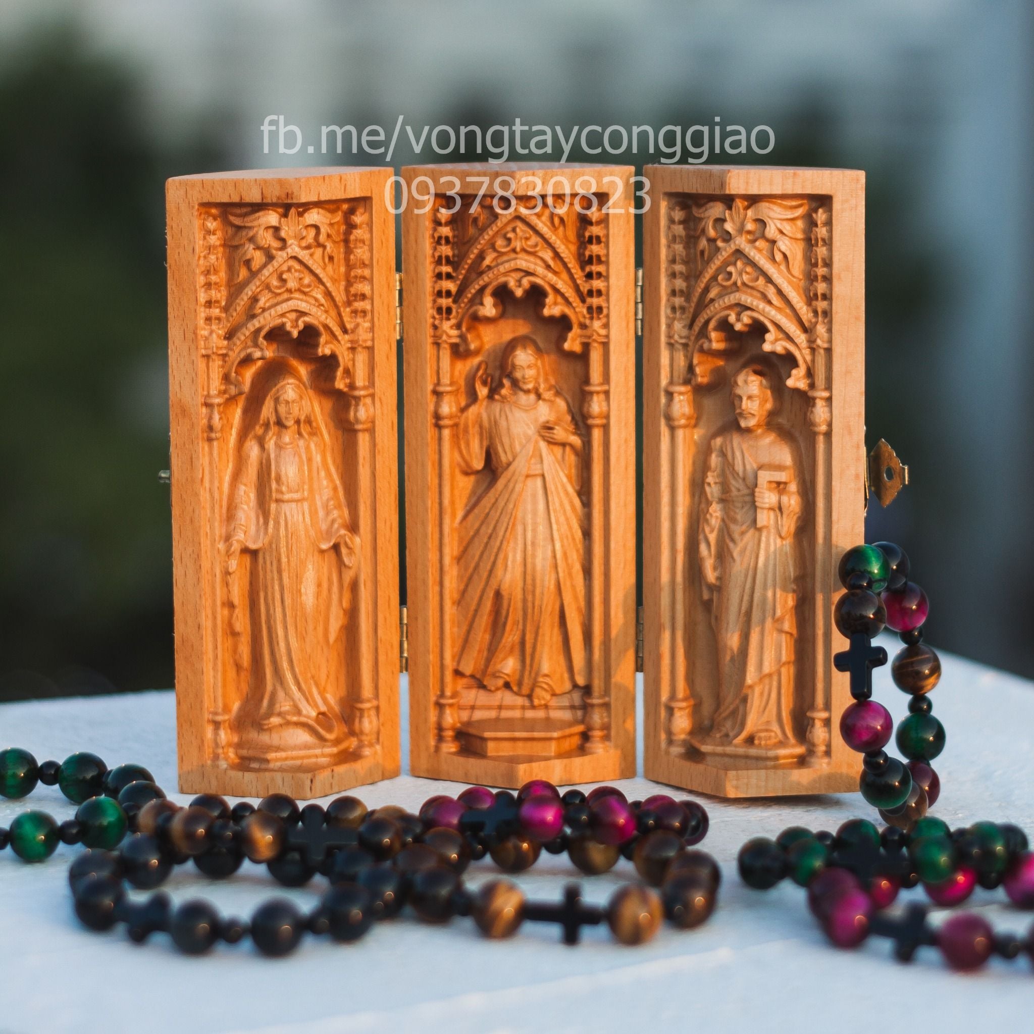 Với sứ mệnh đồng hành cùng anh chị em Công Giáo, Công ty TNHH Vòng Tay Công Giáo đã cho ra mắt rất nhiều sản phẩm như Chuỗi Mân Côi, Tượng, tranh ảnh Công Giáo.... Tiếp nối những sản phẩm trước đó cùng slogan "Cùng Cầu Nguyện Với Chúng Tôi". Công ty đã cho ra mắt sản phẩm Bộ Bàn Thờ Mini tiện lợi - Gia đình Thánh Gia, hoàn thiện sắc nét với chất liệu 100% Gỗ tự nhiên. Cùng tìm hiểu thêm sản phẩm mà chúng tôi muốn gửi đến quý khách hàng.