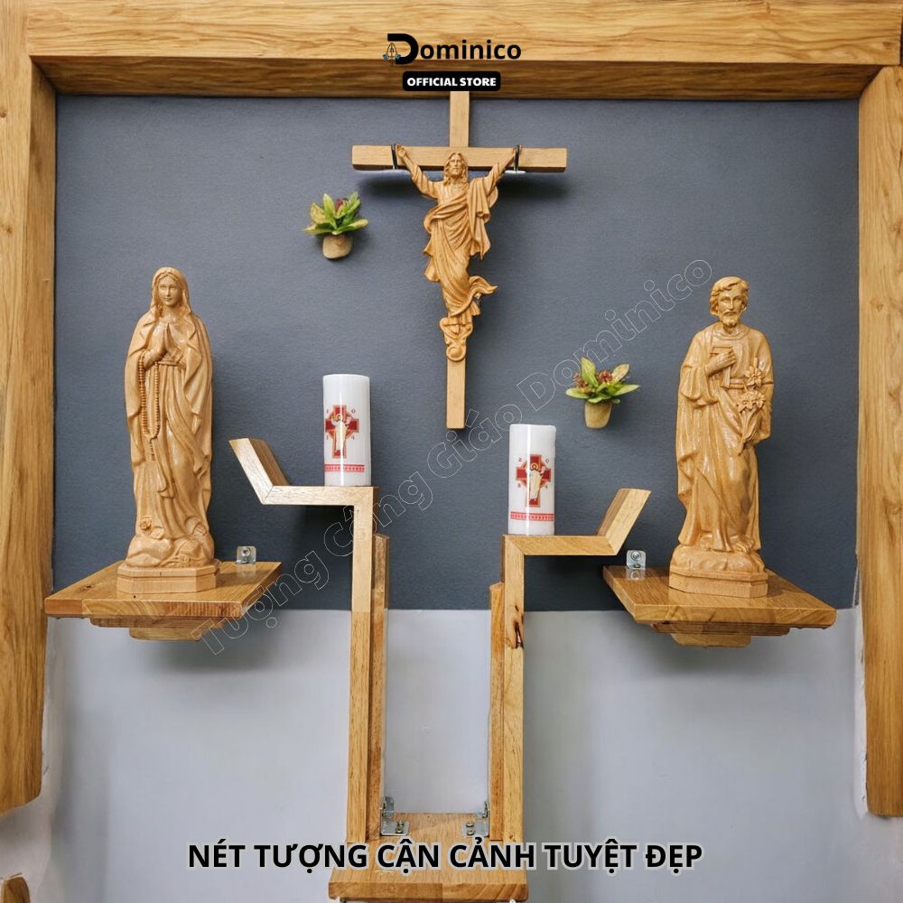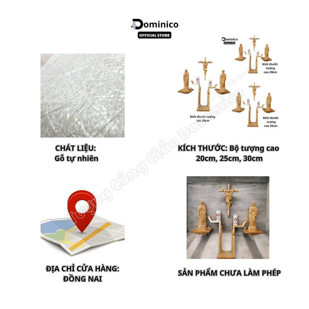 Toàn bộ Ảnh và Video được sản xuất bởi Tượng Công Giáo Dominico với mong muốn mang đến cho khách hàng những trải nghiệm chân thực nhất về sản phẩm "Bộ Tượng Thờ Chúa Phục Sinh Gỗ Tự Nhiên Bền Đẹp Tôn Nghiêm Không Gian Thờ Phượng"