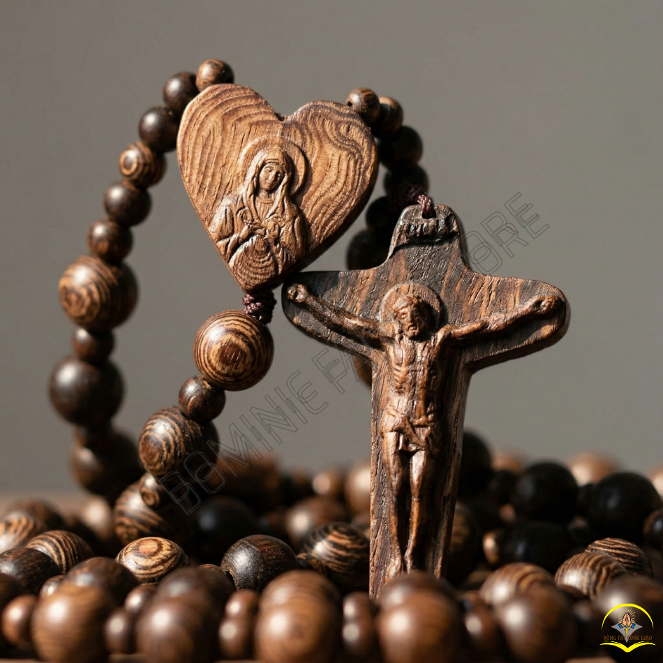 Hành trang Đức tin trường tồn: Chất liệu trầm già đảm bảo càng đeo lâu, hạt gỗ càng lên nước bóng đẹp, đồng hành cùng bạn qua nhiều năm tháng sống đạo.