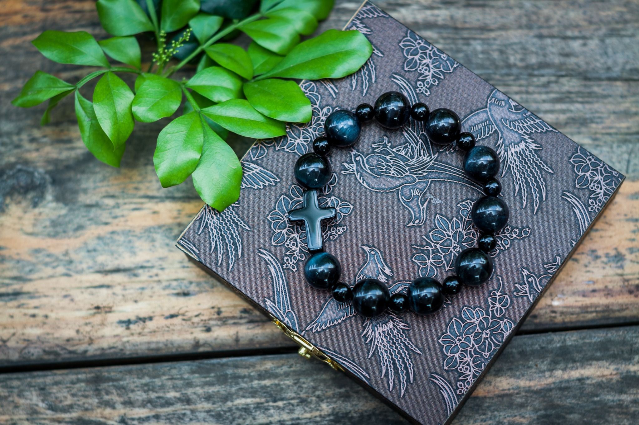 Chuỗi Mân Côi Đá Thạch Mắt Hổ Xanh Đen