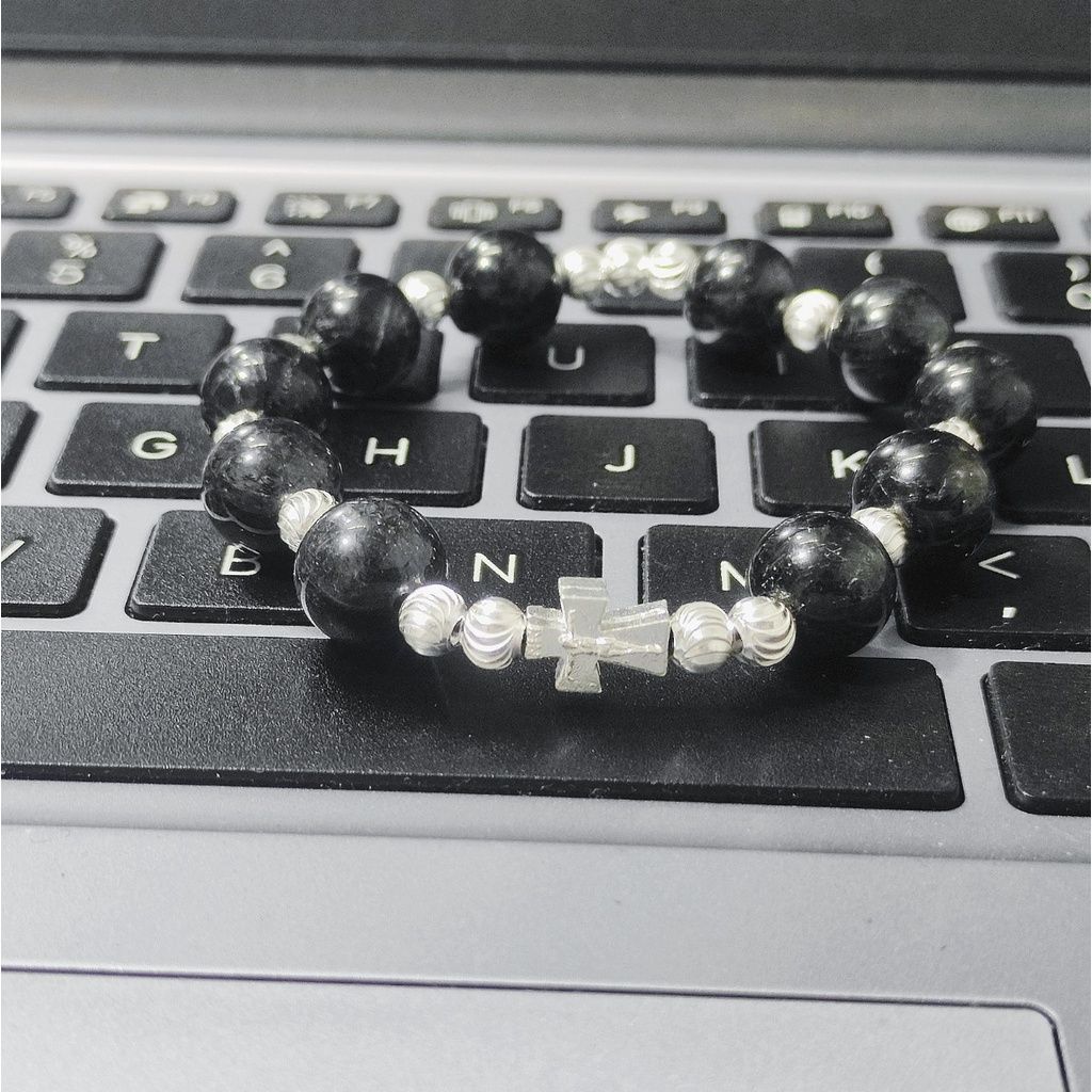 Chuỗi Mân Côi Đá Thạch Anh Tóc Đen Mix Bạc Ta