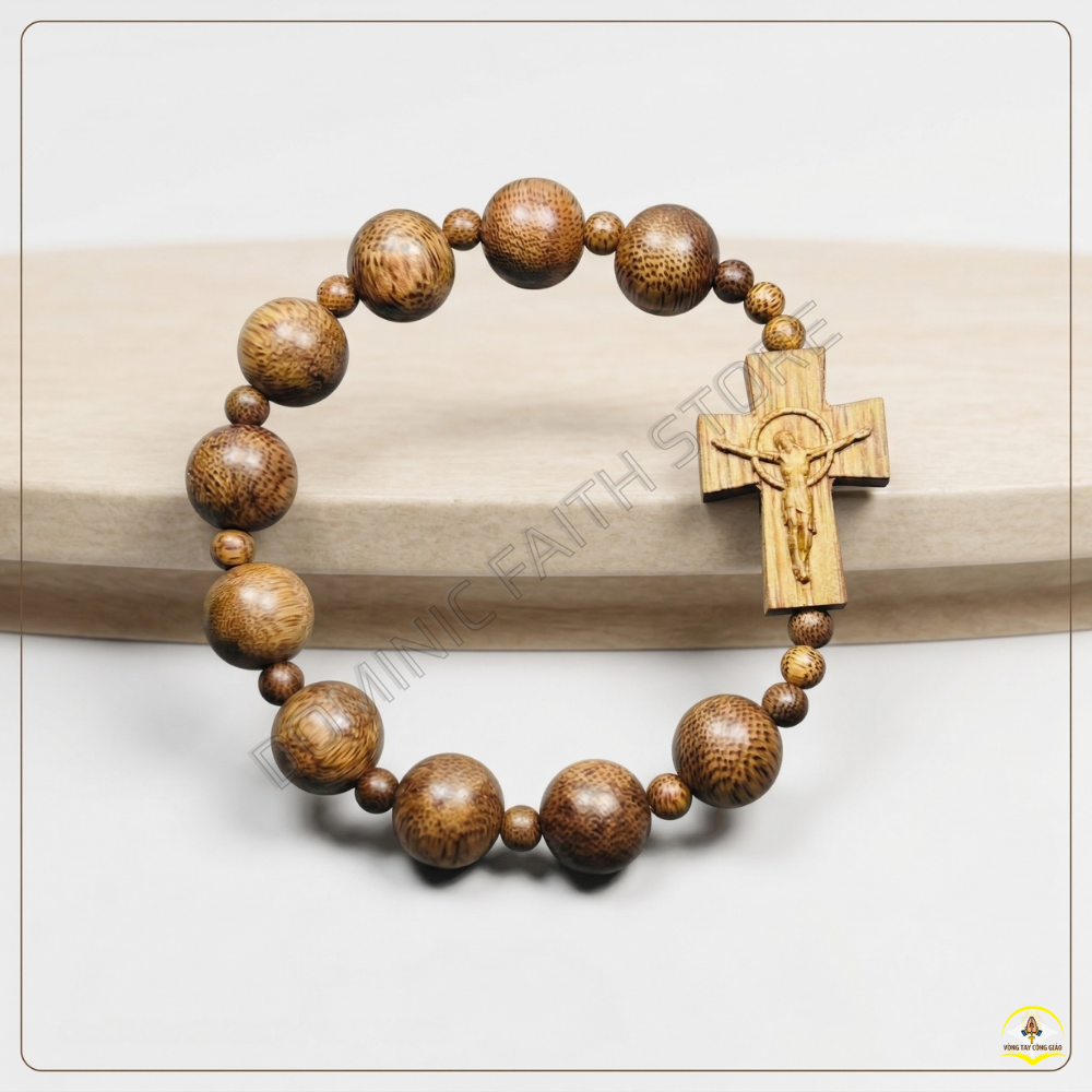 Mẫu Chuỗi Mân Côi Trầm Hương Tốc Vườn hạt tròn là minh chứng cho việc cái đẹp đôi khi đến từ sự giản đơn nhất. Không cầu kỳ, không phô trương, sản phẩm chinh phục người đeo bởi chất mộc của gỗ rừng và ý nghĩa linh thánh của lời kinh Mân Côi.