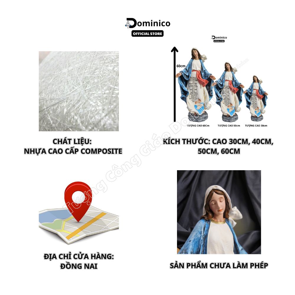 Toàn bộ Ảnh và Video được sản xuất bởi Tượng Công Giáo Dominico với mong muốn mang đến cho khách hàng những trải nghiệm chân thực nhất về sản phẩm "Tượng Công Giáo Composite Cao Cấp Đức Mẹ Ban Ơn"