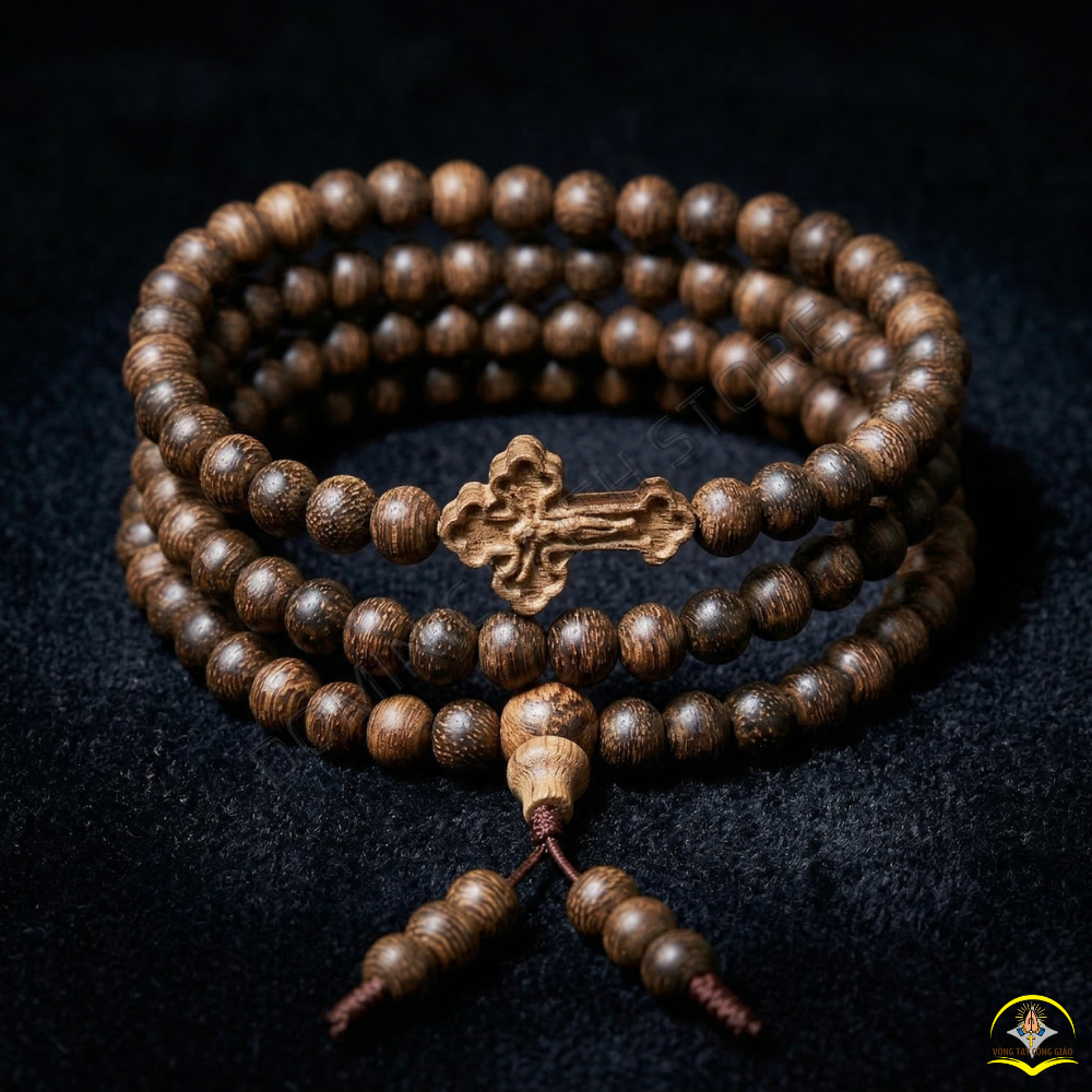 Vòng Tay Trầm Hương Tốc Vườn Mix Thánh Giá – Nét Đẹp Cổ Điển & Hồng Ân Che Chở